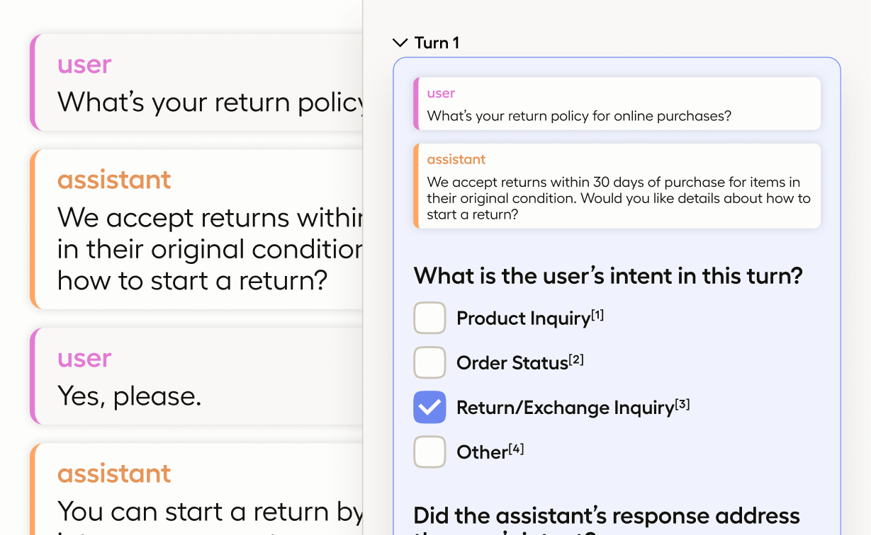 In this example, the labeling configuration is dynamically generated. This is necessary because each chat has a different number of turns (questions and responses).